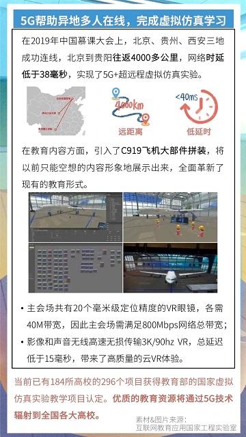 2020年,新冠疫情的爆發使得(de)學校(xiào)無法按時(shí)開(kāi)學,遠程教育成為(wèi)了師(shī)生(shēng)上(shàng)課的新方式,但(dàn)一些(xiē)需要動手實踐的課程,還(hái)是難以通(tōng)過視(shì)頻完成教學……别擔心,其實早在2019年,北京、貴州、西安三地就進行(xíng)了一場(chǎng)5G+超遠程虛拟仿真實驗。學生(shēng)們在虛拟仿真環境中,和(hé)異地的小(xiǎo)夥伴共同操作(zuò),實現了C919飛機大(dà)部件拼裝。實驗數(shù)據往返有(yǒu)4000 多(duō)公裏,但(dàn)延時(shí)隻在 38 毫秒(miǎo)以內(nèi)。